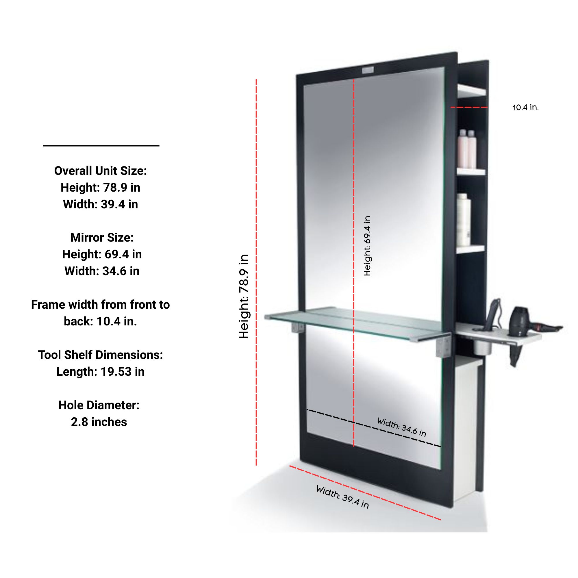Crafted with a premium wood structure and a high-quality glass mirror, this station delivers a clean, minimalist look while ensuring durability for daily use. The design includes built-in rear storage compartments and a side tool shelf, allowing stylists to keep essential tools organized and within reach.