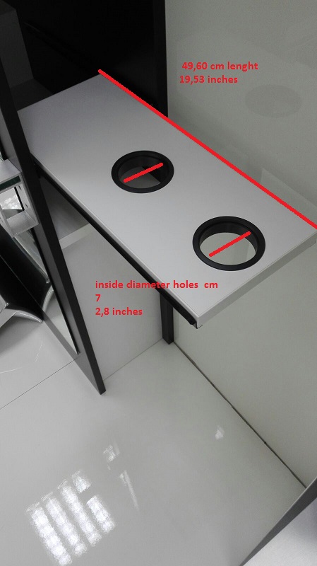 The integrated tool holder shelf features pre-cut openings, ideal for holding blow dryers, brushes, and styling tools, improving workflow efficiency and keeping your station clutter-free.